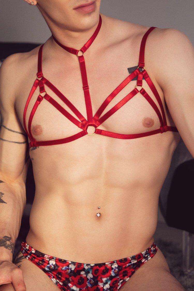 ✨ Dieser süße und verstellbare rote BH-Harness ist ein technisches Wunderwerk! Er ist robust, dehnbar und leicht glänzend und sieht sowohl über einem YDress-BH als auch allein fantastisch aus. Der 3/4-Zoll-Gummizug, an verschiedenen Stellen mit O-Ringen verziert, umrahmt Ihre Brustpartie wunderschön. Mit Verstellmöglichkeiten an der Rückseite, um die Brust und am vorderen vertikalen Riemen ist dieses Einheitsgrößen-Modell dehnbar und passt bis zu einem Brustumfang von 130 cm.