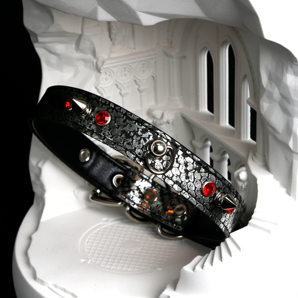 This handmade choker features a striking snakeskin pattern, bringing a bold, edgy look to your accessories. The original design is perfect for those who love punk, gothic, and alternative fashion.