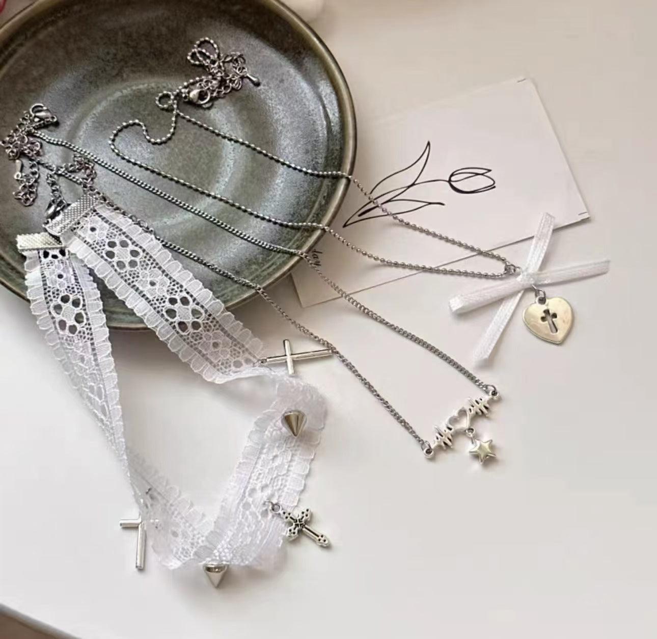 • Seductive Lace Heart Cross Pendant Necklace 🌹